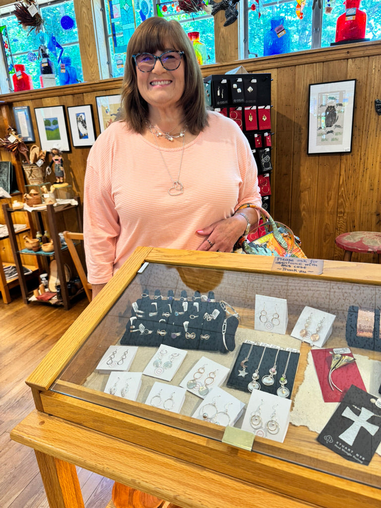 Handcrafted earrings with hammered sterling silver hoops with a sliding sterling silver bead added to create movement and shine.
